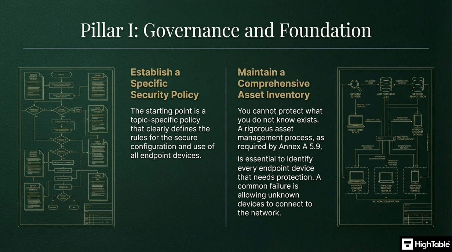 ISO 27001 Annex A 8.1 User Endpoint Device Security – implementation framework pillar 1 – governance and foundation