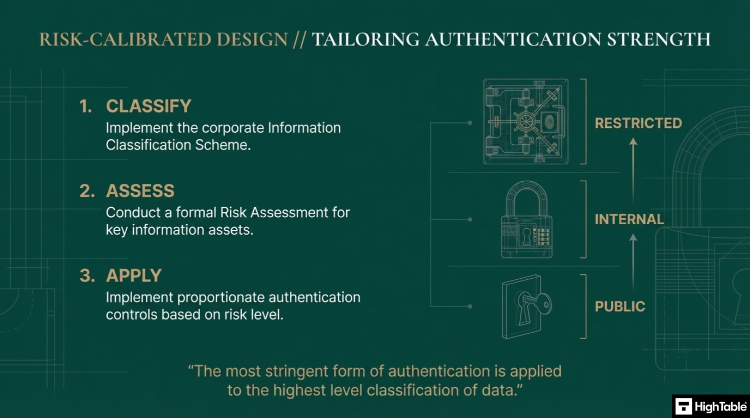 You are going to implement your information classification scheme, do your risk assessment and work out the level of authentication that is appropriate to you based on that. Usually the most stringent form of authentication is applied to the highest level classification of data.