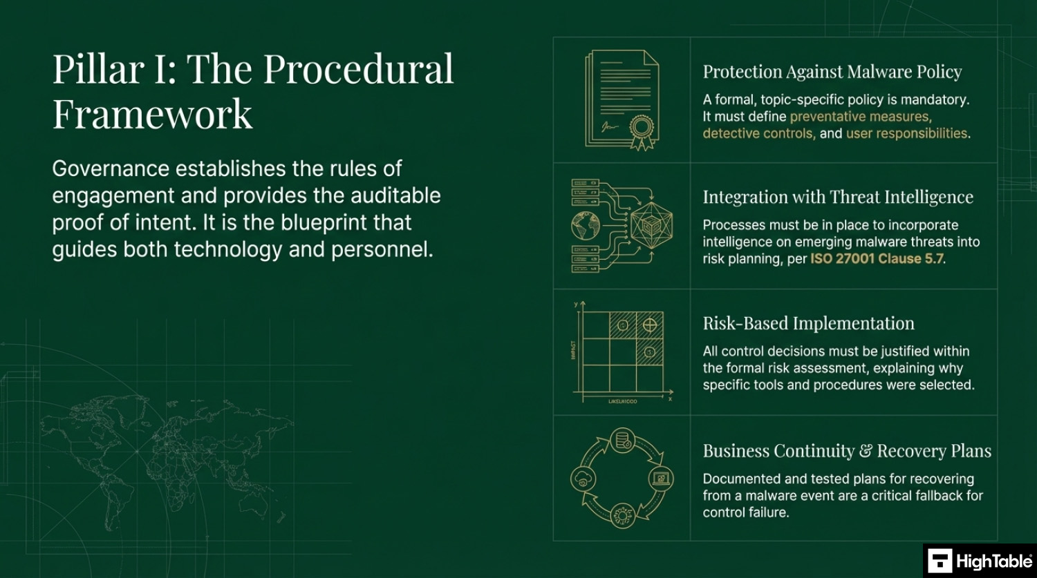 - Risk Assessment Integration: Provides the templates to document malware threats and link them to your technical controls (like EDR and patching).