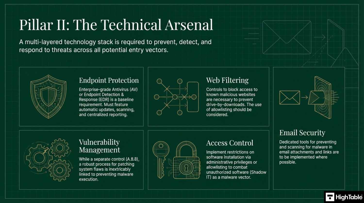 Implementing malware protection requires a multi-layered approach. The graphic below outlines the critical path from policy to technical controls.