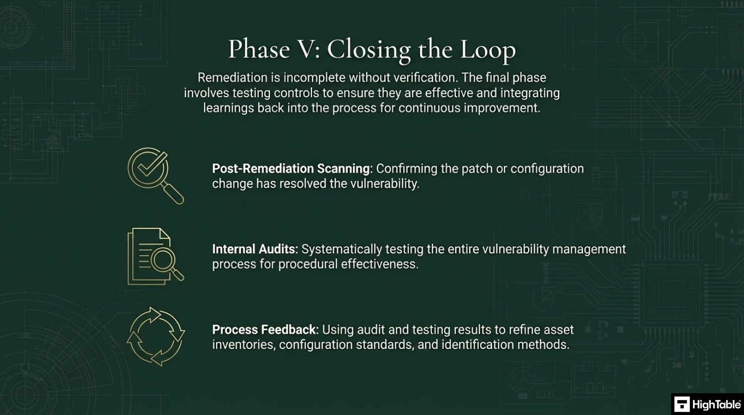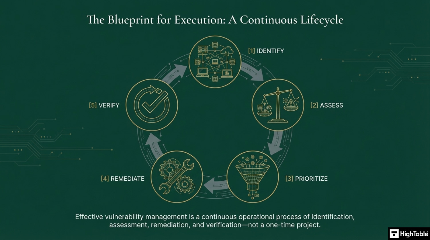 - Continuous Identification: You must have a process for finding vulnerabilities. This includes subscribing to vendor alerts (like Microsoft or Cisco), using automated vulnerability scanners (e.g., Nessus or Qualys), and conducting regular penetration tests.