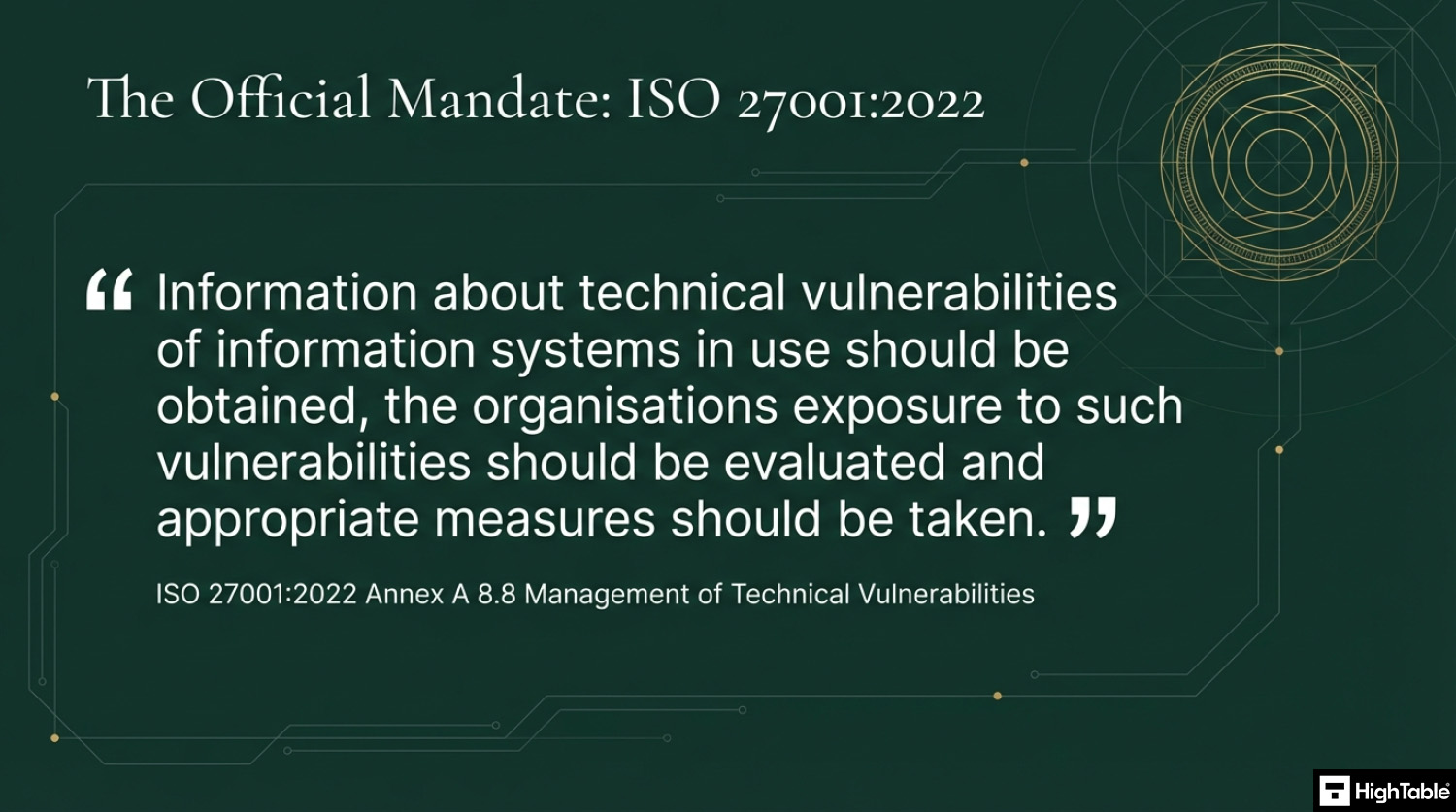 For ISO 27001 Annex A 8.8 (Management of technical vulnerabilities), the requirement is to obtain information about technical vulnerabilities, evaluate your exposure, and take appropriate measures (such as patching). While many SaaS compliance platforms attempt to sell you “vulnerability scanning integrations” or complex “remediation dashboards,” they often overcomplicate what is fundamentally a governance and risk-based decision process.