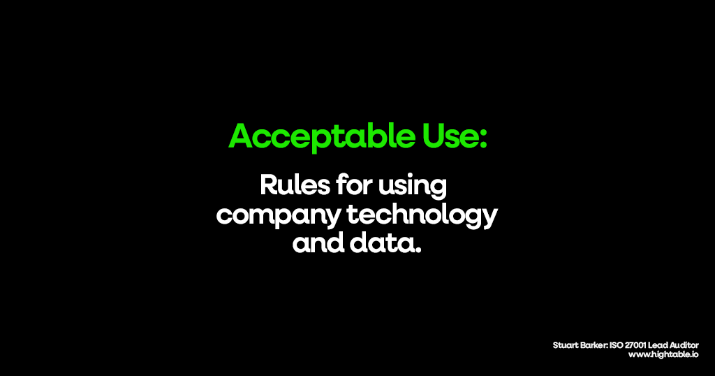 - ISO 27001:2022 Annex A 5.10 Acceptable Use Of Information And Other Associated Assets: This controls requires rules for acceptable use to be put in place.