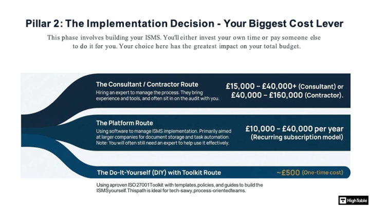 - This is where you have the most control. You can pay a consultant £15,000+ to do it for you, or use a verified framework like the High Table Implementation Suite (~£290) to manage it internally.