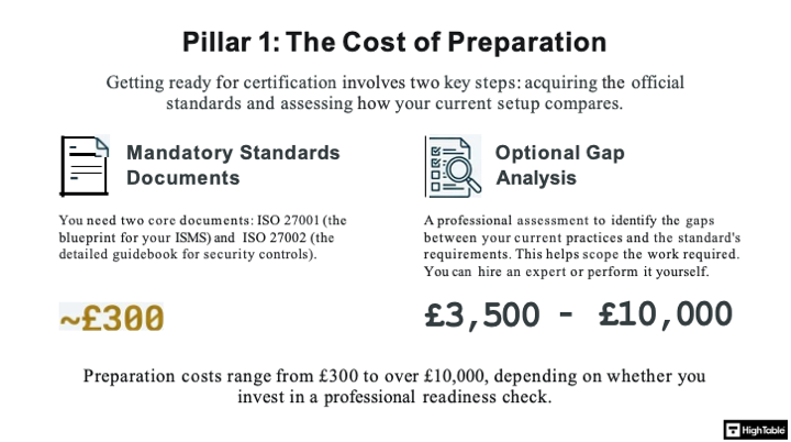 Preparation costs go under the radar but are vital, especially in terms of purchasing the ISO 27001:2022 standard.