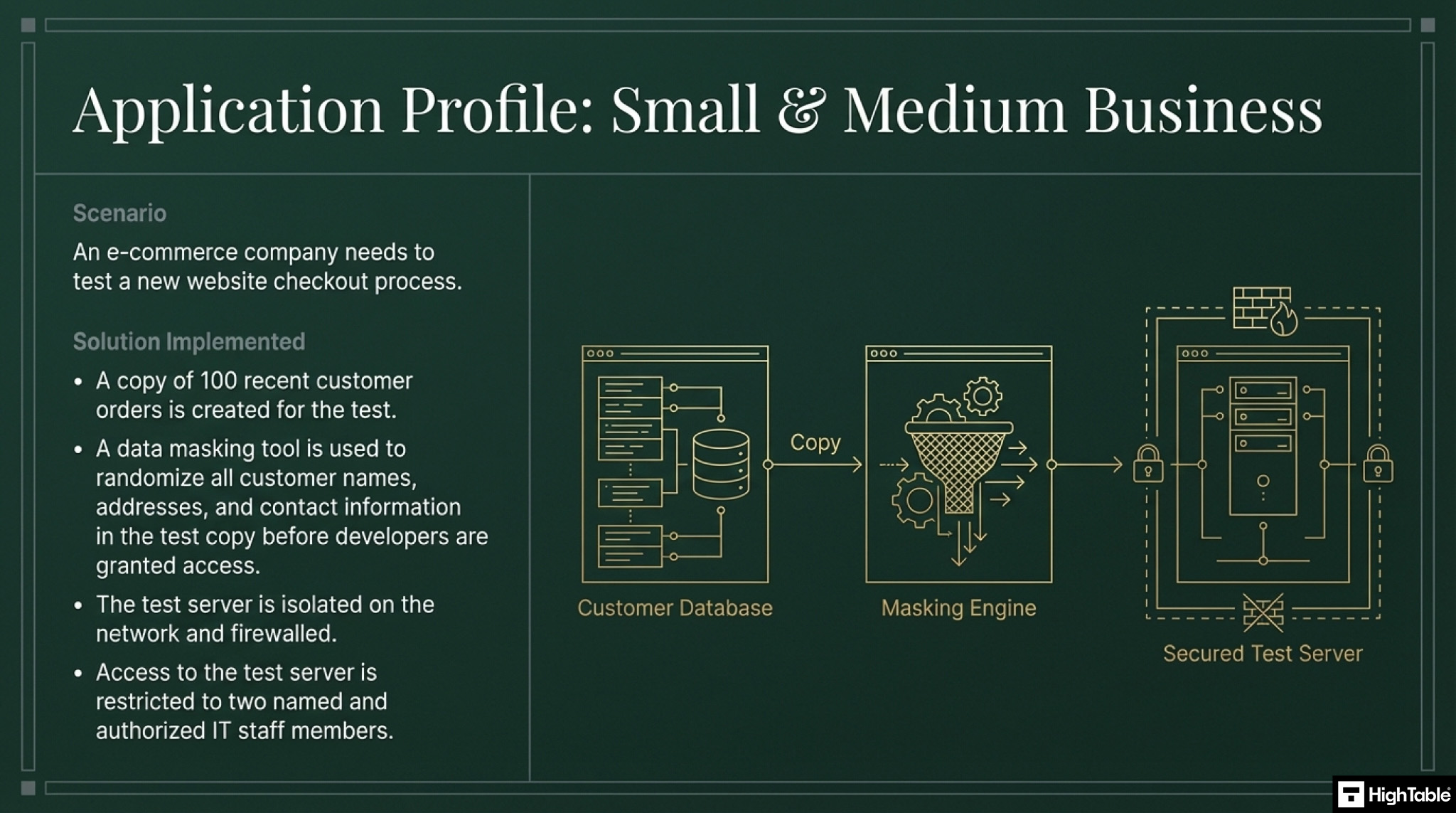 | Small Businesses | You may not have complex testing environments, but if you take a copy of your customer database to test a new sales system, that copy must be protected. |