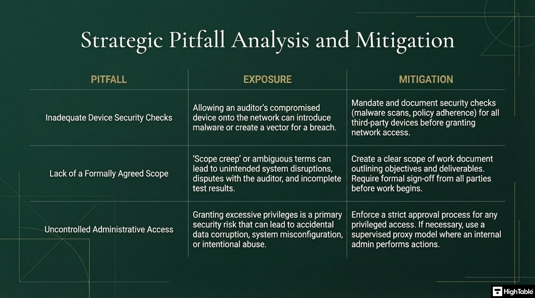 | System Access | Giving the auditor “Admin/Root” keys. | Giving “Read-Only” access or using screen sharing to maintain control. |